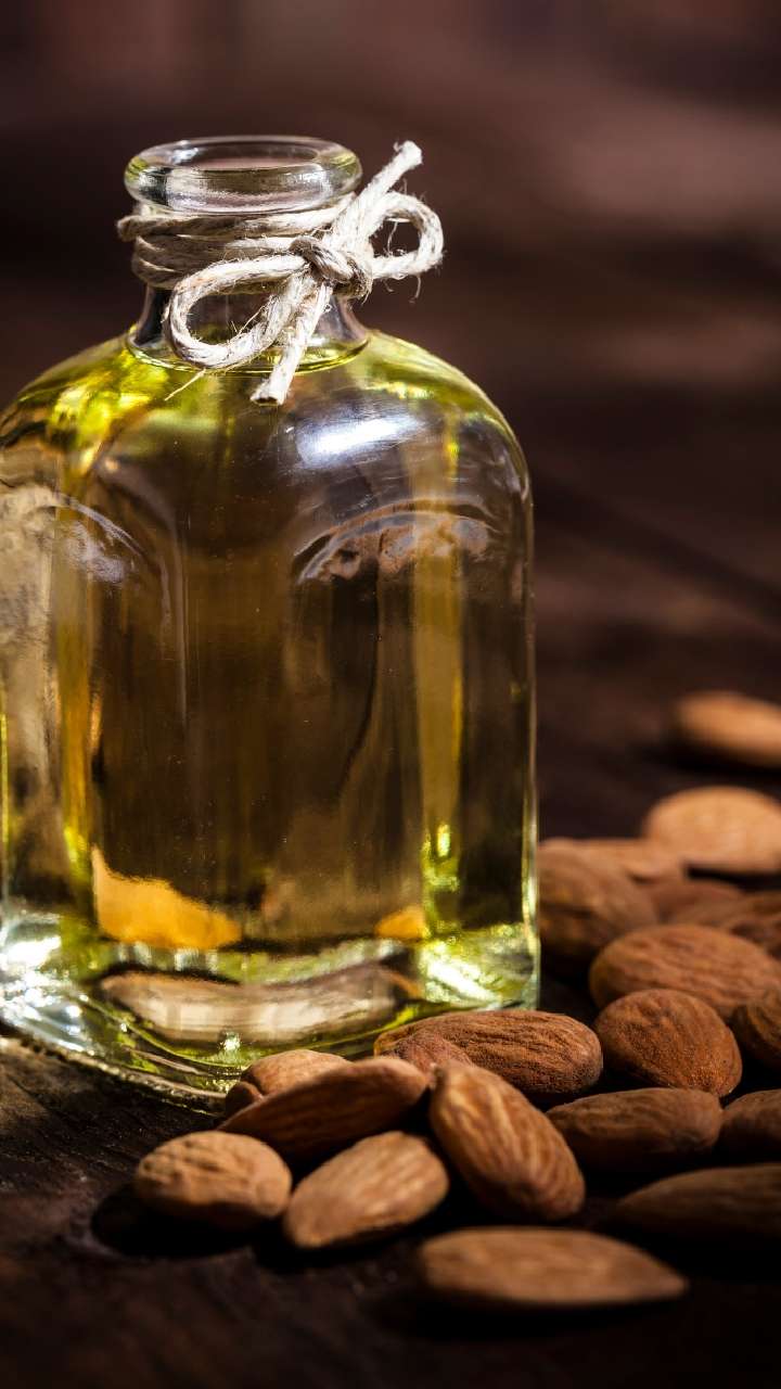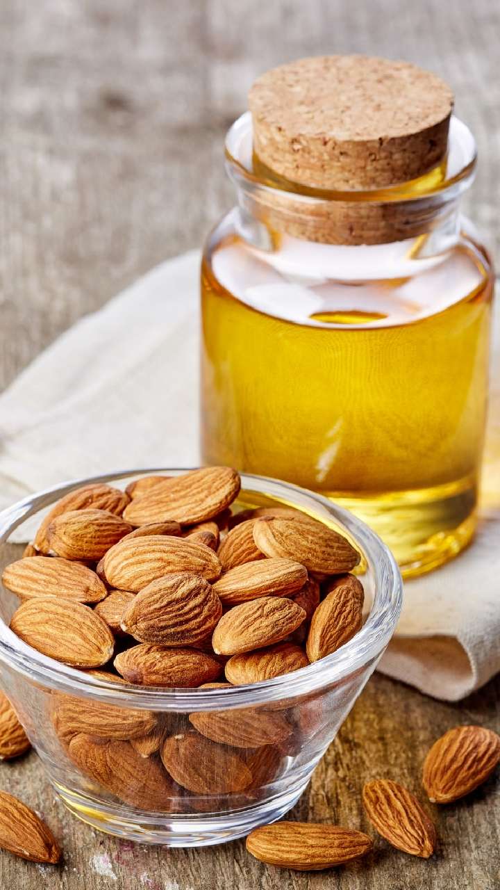 बादाम तेल में विटामिन-ई और फैटी एसिड होते हैं, जो त्वचा को पोषण प्रदान करने में मदद करते हैं।