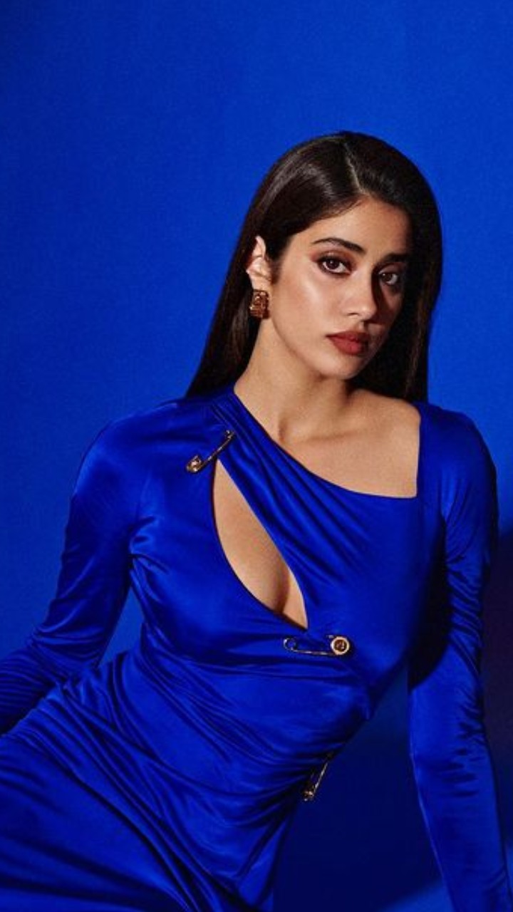 जाह्नवी ने इस हाई स्लिट गाउन संग ओपन हेयर और ग्लॉसी मेकअप से अपने लुक को कंप्लीट किया है।