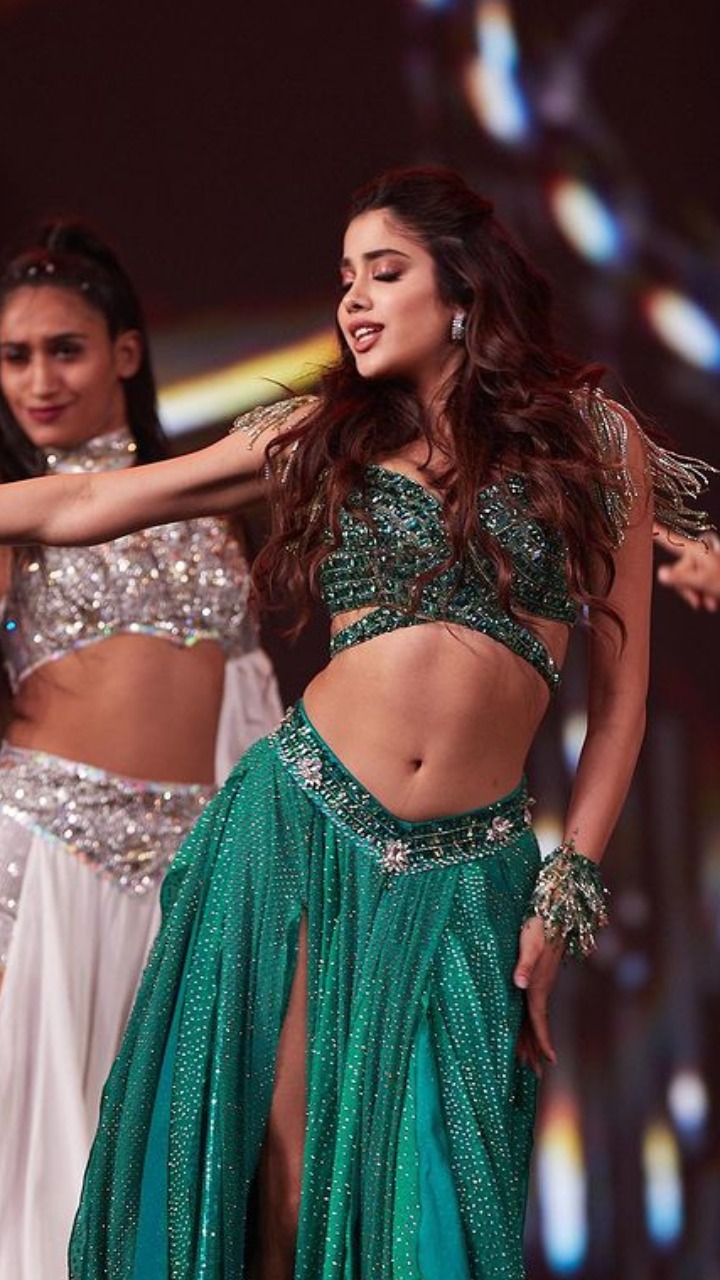 जाह्नवी लहंगा पहने अपने डांस से फैंस को मदहोश करती नजर आ रही हैं।