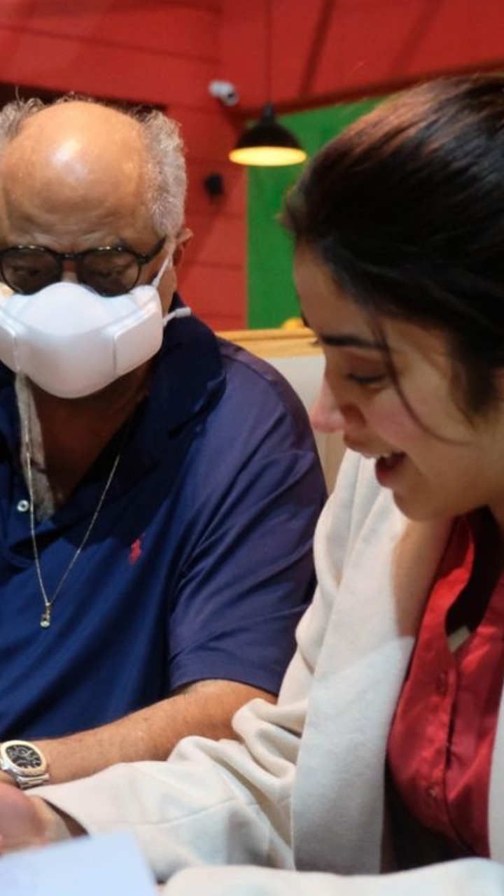 इस फोटो में एक्ट्रेस पिता बौनी कपूर संग नजर आ रही हैं। फिल्म में भी एक्ट्रेस पिता संग स्क्रीन शेयर करती नजर आएंगी।