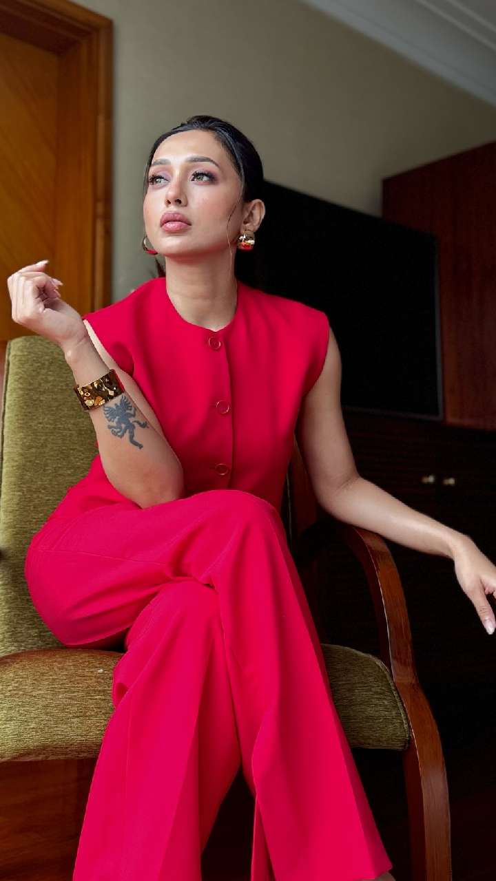 रेड कलर के इस को-ऑर्ड सेट में मिमी चक्रवर्ती काफी ज्यादा हॉट लग रही हैं। आप भी एक्ट्रेस के इस लुक को स्टाइल कर सकती हैं।