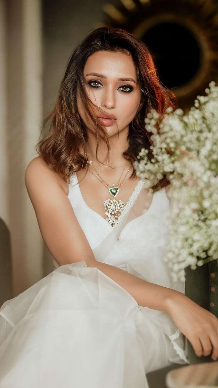 अभिनेत्री ने हाल में इंस्टाग्राम पर व्हाइट कलर की प्लेन साड़ी कट स्लीव्स ब्लाउज में अपना गॉर्जियस लुक शेयर किया है।