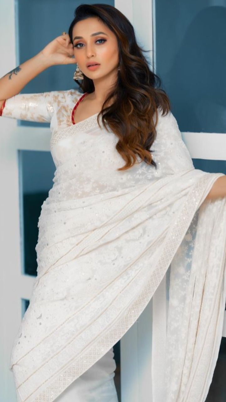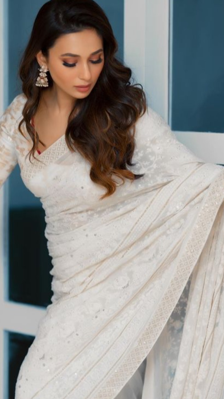 डीवा ने अपनी इस लेटेस्ट व्हाइट साड़ी वाले इंडियन लुक से फैंस को इंप्रैस कर दिया है।
