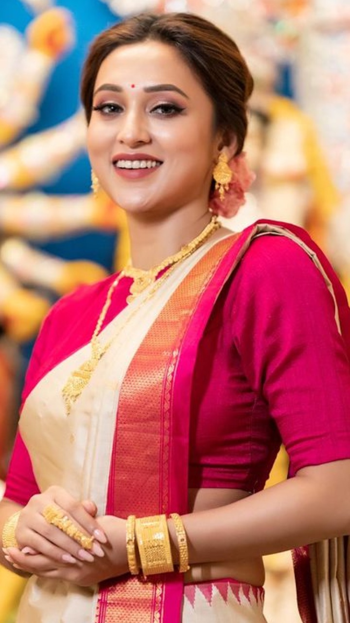 बंगाली इंडस्ट्री की अभिनेत्री मिमी का ये बंगाली साड़ी लुक उनको स्टनिंग लुक दे रहा है।