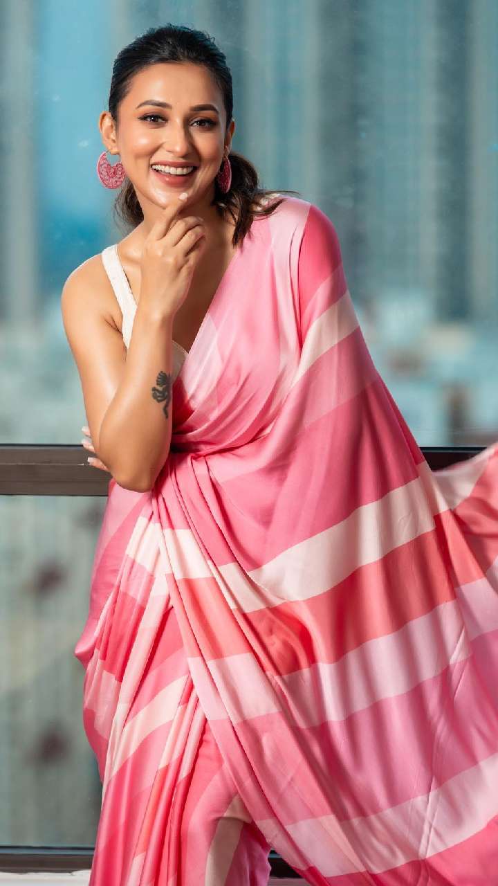 मिमी चक्रवर्ती की साड़ी लुक को लेकर बात हो और पिंक साड़ी का जिक्र न करें ये तो थोड़ा सही नहीं होगा। दरअसल, पिंक कलर की साड़ी में मिमी की खूबसूरती की जितनी तारीफ की जाए वो कम ही है।