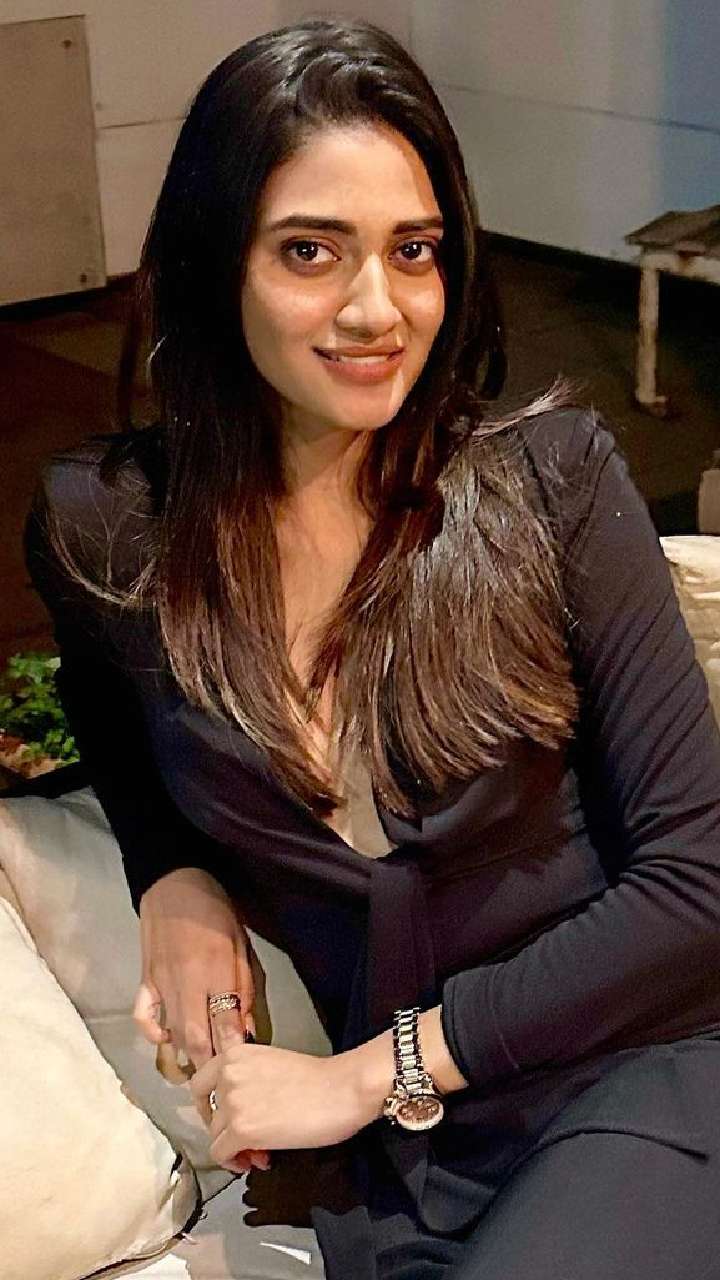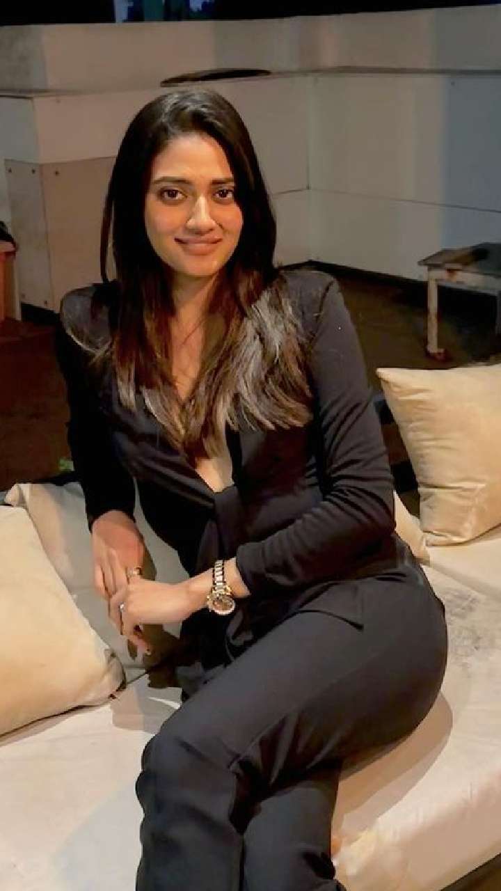 तस्वीर में डीवा ने ब्लैक कलर का डीप नेक फुल स्लीव टॉप और पैंट पहनी हुई हैं.