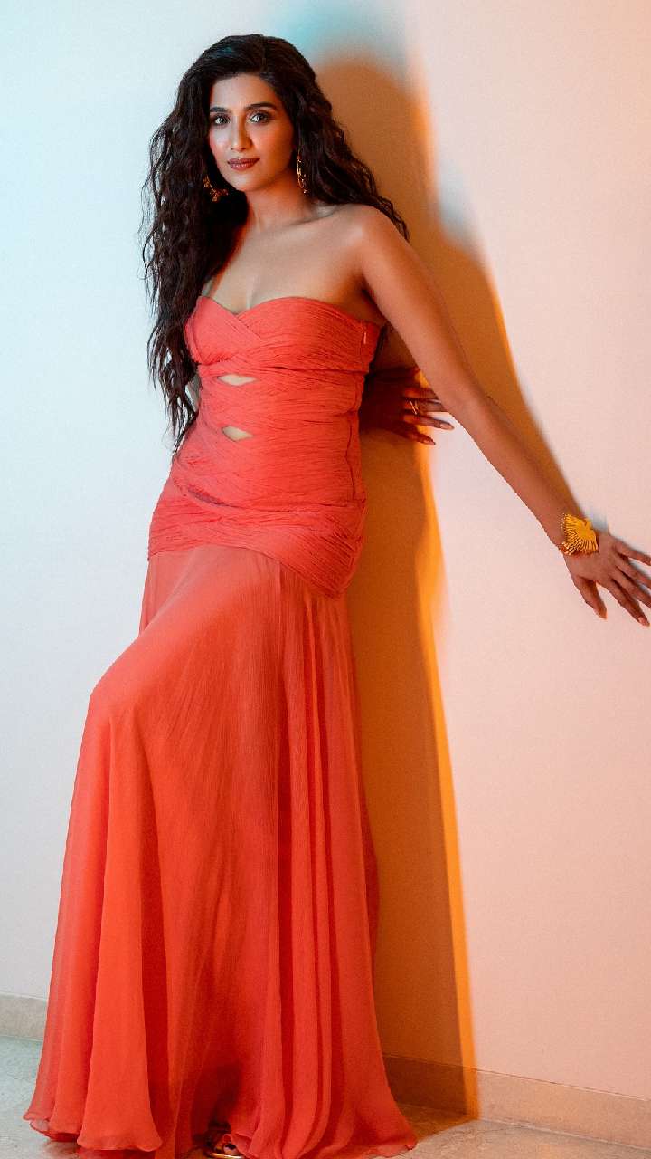 एक्ट्रेस इस लॉन्ग और डिजाइनर गाउन में काफी अट्रैक्टिव और खूबसूरत नजर आ रही हैं। यंग गर्ल्स मेसी बन हेयर स्टाइल और बोल्ड मेकअप के साथ लुक को अट्रैक्टिव बना सकती हैं।