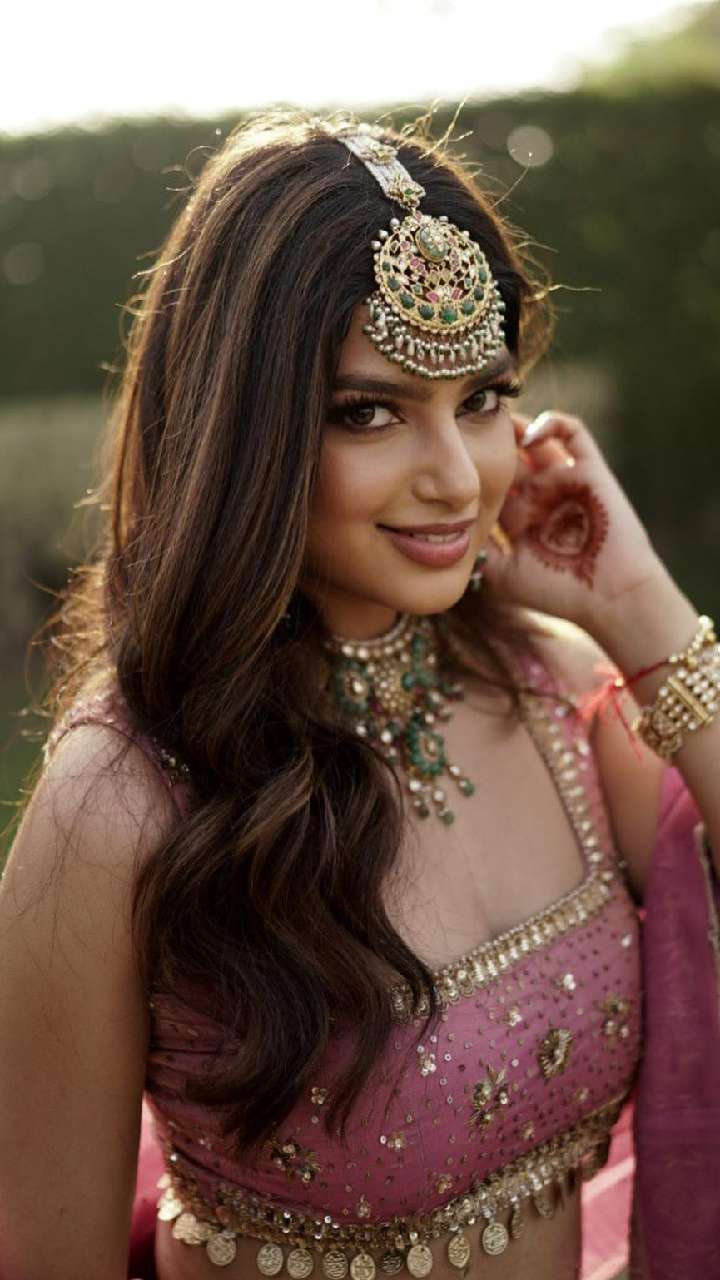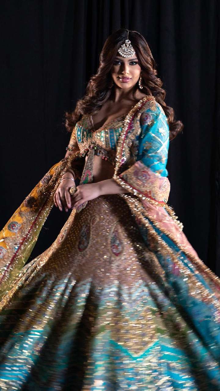 हरनाज संधू ने हाल ही में अपना लेटेस्ट लहंगा लुक शेयर किया है। इस मिरर वर्क हैवी लहंगा लुक के साथ हरनाज ने मांग टीका भी लगाया है।