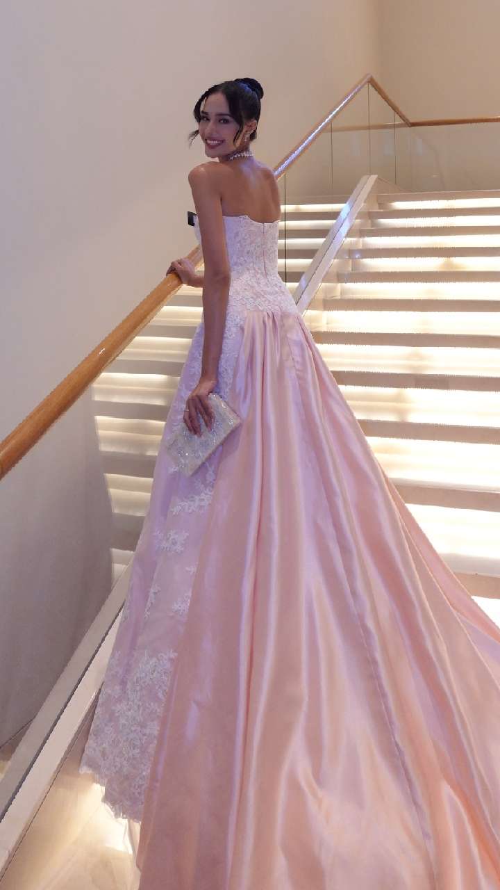 ओपल सुचाता पिंक कलर की ऑफ शोल्डर गाउन में बेहद खूबसूरत नजर आ रही हैं। उनका ये लुक फैंस ने खूब पसंद किया।