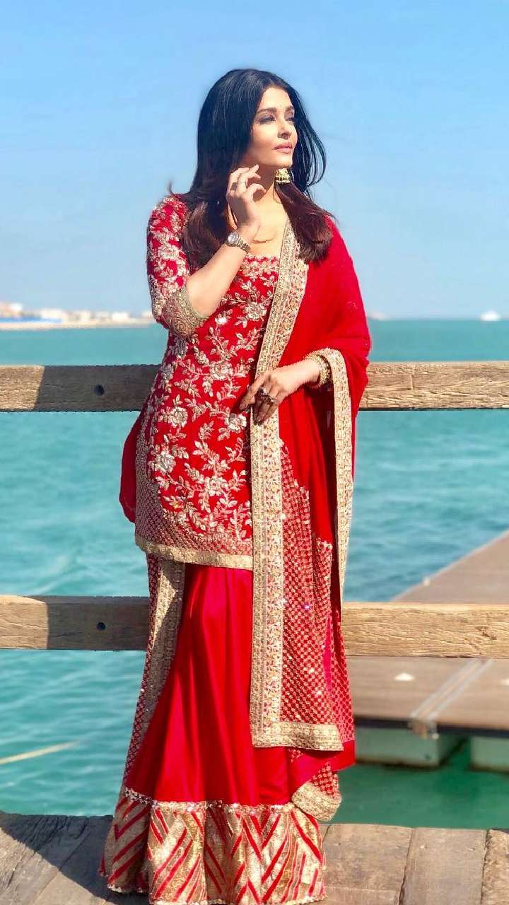 इस रेड कलर के शरारा सूट में अभिनेत्री बला की खूबसूरत लग रही हैं। ये आपके फेस्टिव लुक के लिए परफेक्ट ऑप्शन है।