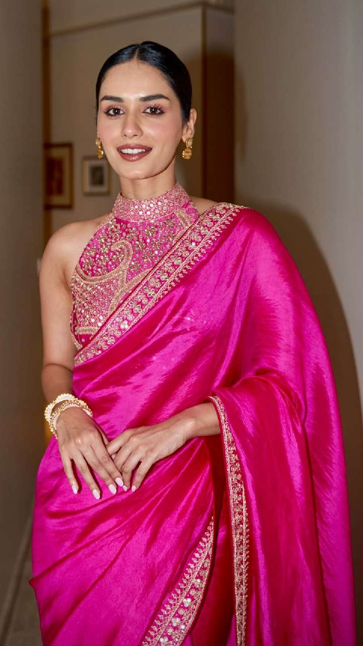 आप मानुषी छिल्लर की इस पिंक साड़ी को भी कैरी कर सकती हैं। एक्ट्रेस ने इस साड़ी के साथ शानदार ब्लाउज कैरी किया है।