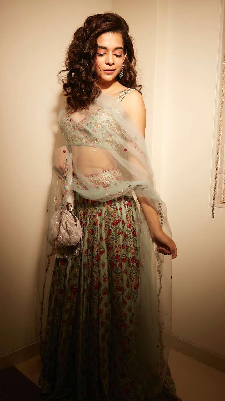 मिथिला पालकर के पास लहंगे का भी शानदार कलेक्शन है। ग्रीन कलर के मिरर वर्क लहंगे में एक्ट्रेस का लुक कमाल का लग रहा है।