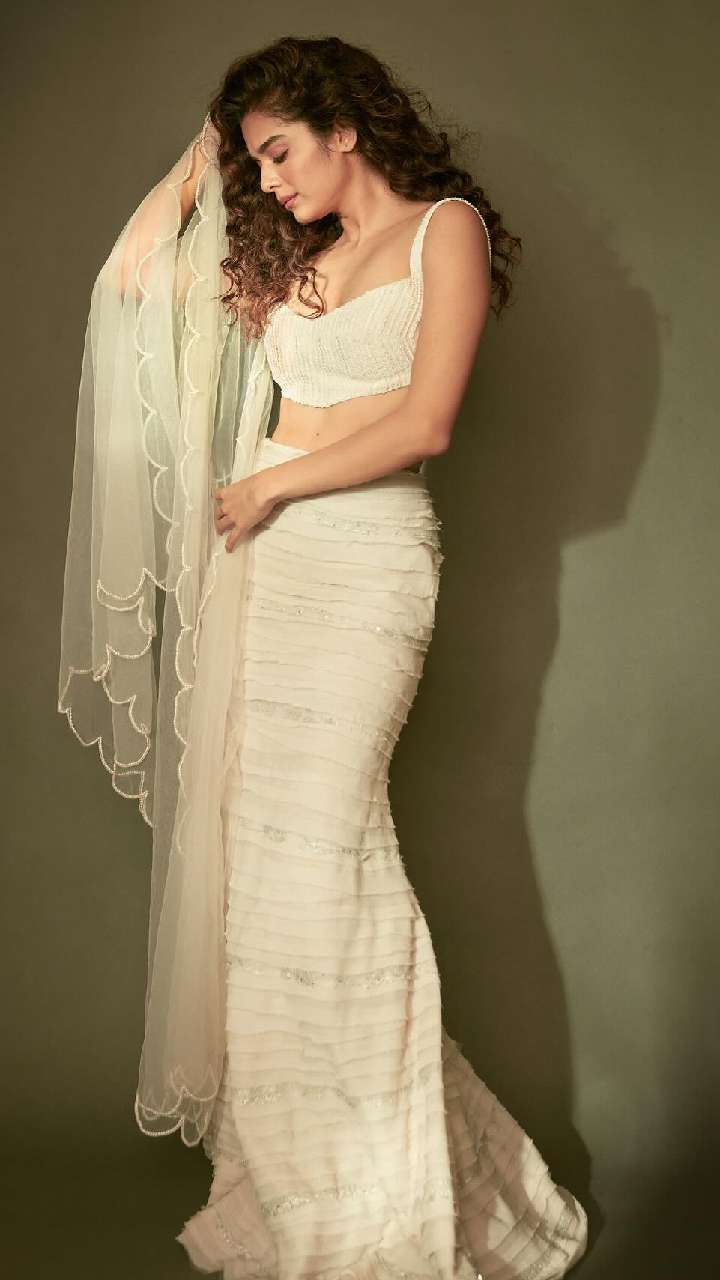 व्हाइट कलर के लहंगे में मिथिला पालकर का लुक रिसेप्शन पार्टी के लिए परफेक्ट है। आप एक्ट्रेस के सेसी ब्लाउज डिजाइन को भी कॉपी कर सकती हैं।