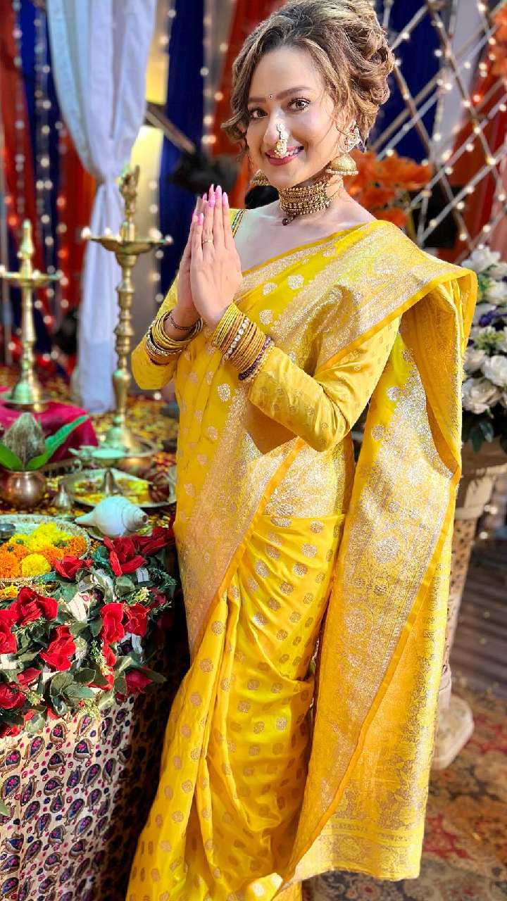 इन दिनों रफल साड़ी खूब ट्रेंड में है। रफल साड़ियां लुक को शानदार बना देती हैं। आप भी इस तरह की साड़ी हल्दी सेरेमनी के लिए चुन सकती हैं।