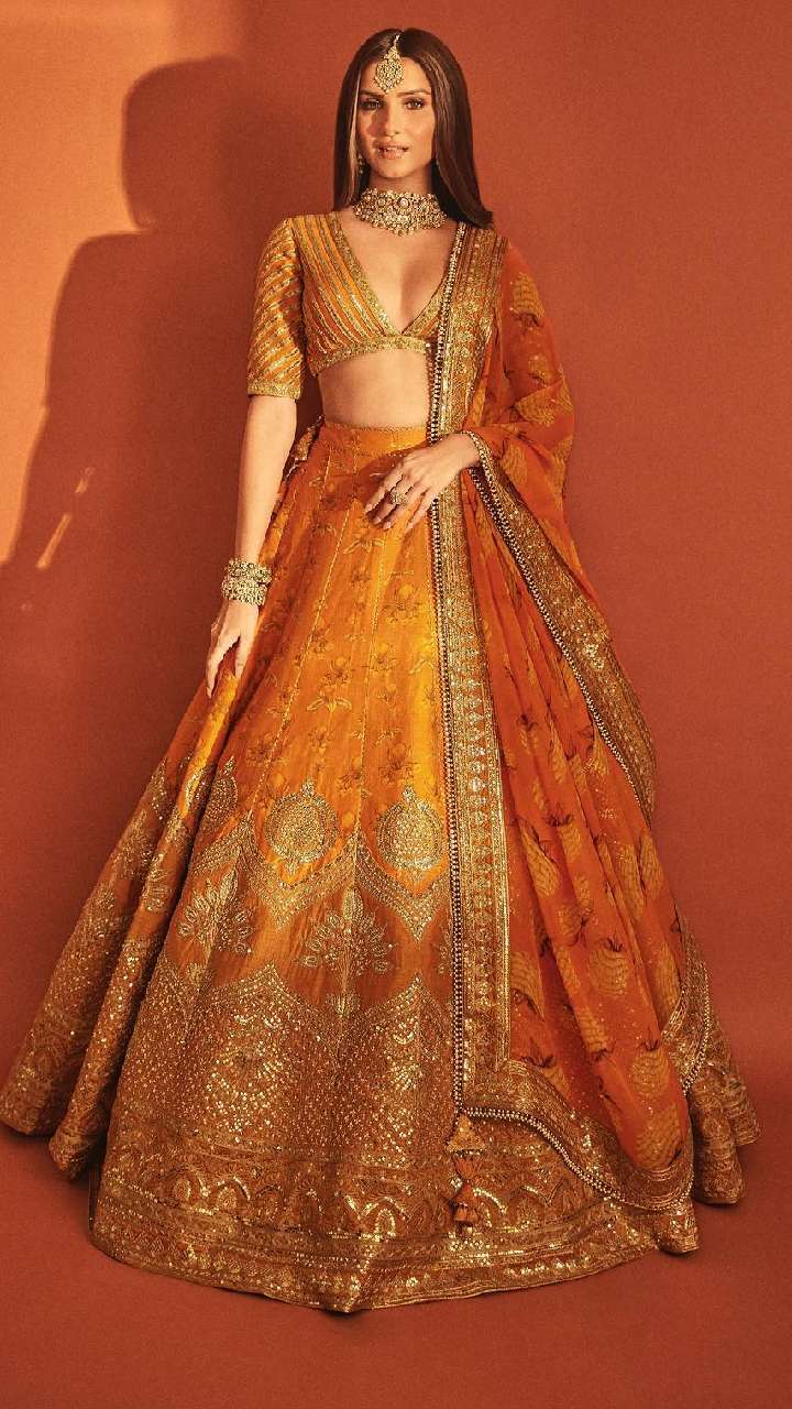 आजकल लड़कियां शादियों में लहंगे पहनना काफी पसंद करती हैं। एक्ट्रेस इस लहंगे में रानी जैसी लग रही हैं। आप भी इस लहंगे को शादी में लूज बन हेयर स्टाइल के साथ कैरी कर सकती हैं।