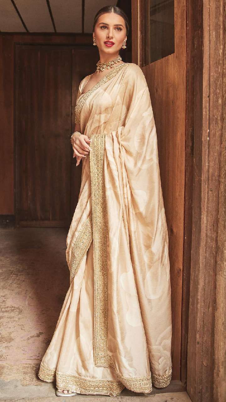 Tara इस साड़ी में बेहद एलिगेंट लुक दे रही हैं। यंग गर्ल्स ऐसी साड़ी को अपने कॉलेज इवेंट में भी पहन सकती हैं।