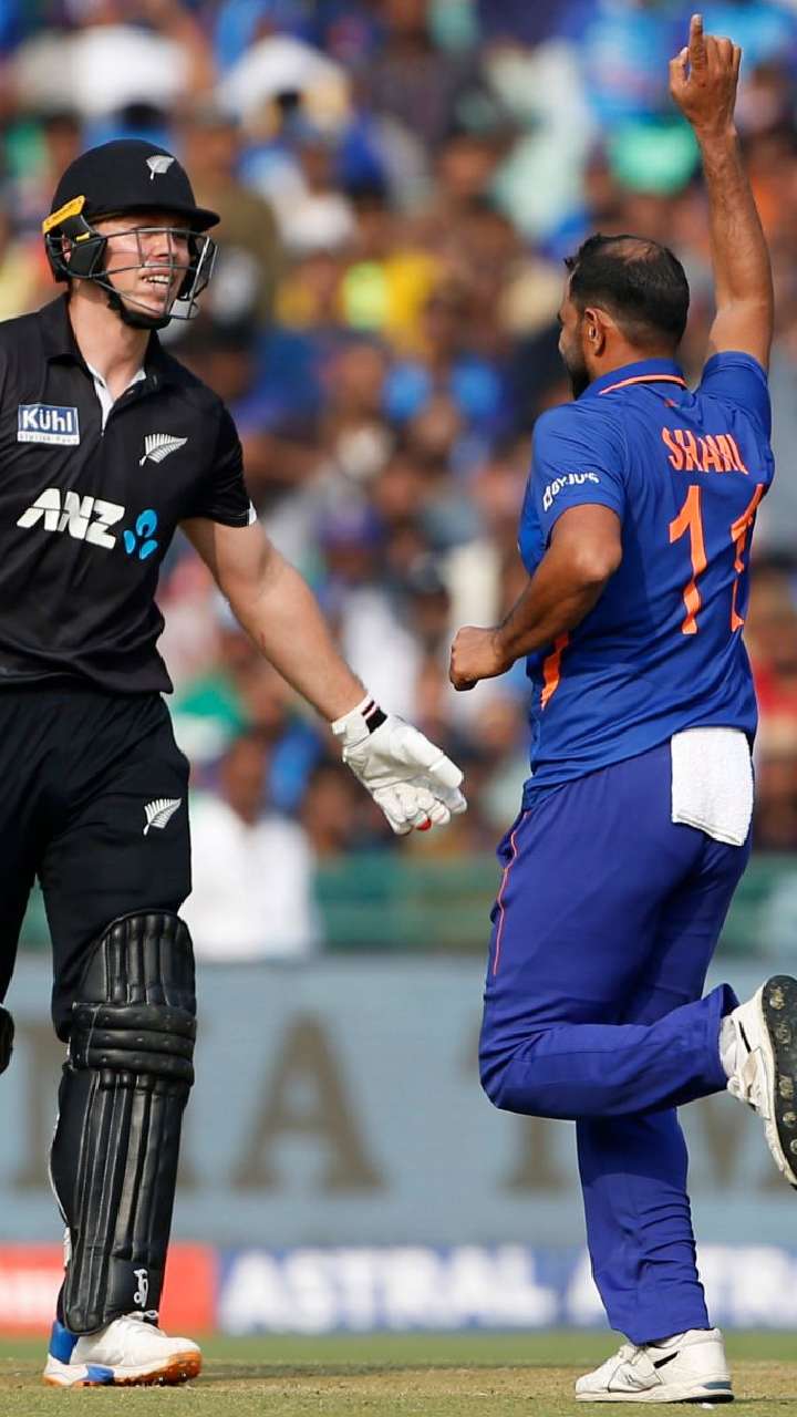 मोहम्मद शमी ने सबसे पहले फिन एलेन को अपना शिकार बनाया।