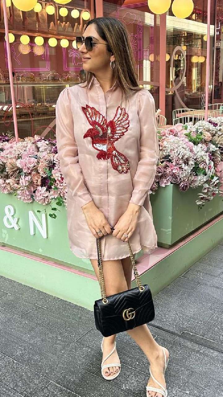 एक्ट्रेस की ये ऑर्गेंजा ईगल प्रिंट ड्रेस पार्टीज में काफी कूल लुक देगी।