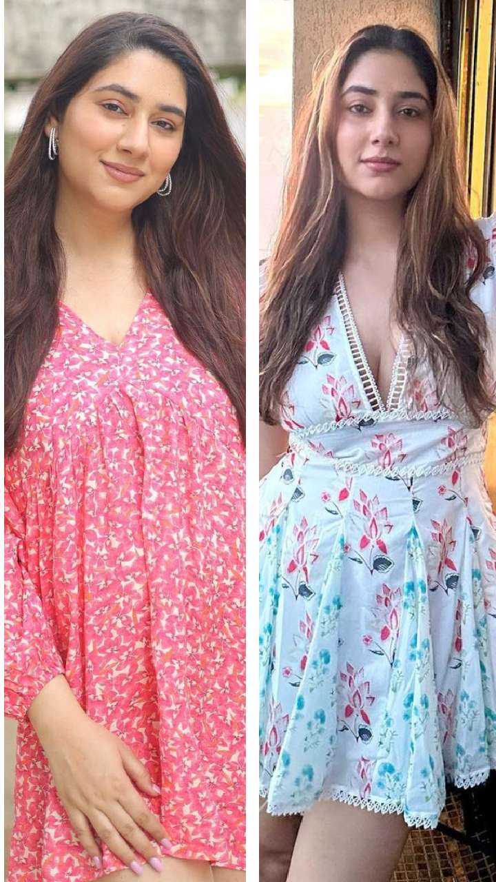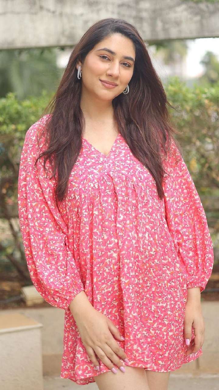 दिशा का ये सिंपल प्रिंटेड पिंक कलर कॉटन ड्रेस लुक बेहद प्रिटी लुक दे रहा है।