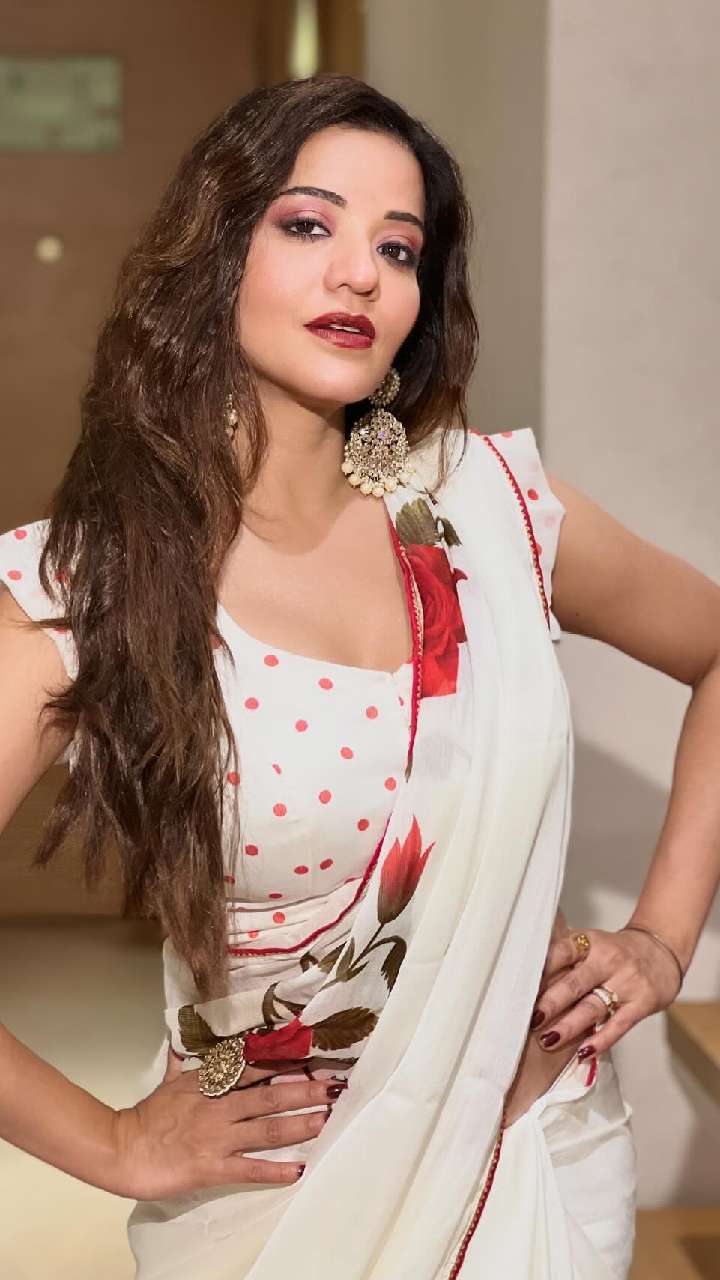 मोनालिसा ने सोशल मीडिया पर अपना लेटेस्ट साड़ी लुक शेयर किया है। व्हाइट फ्लावर प्रिंटेड साड़ी के साथ एक्ट्रेस ने फ्रिल ब्लाउज कैरी किया है।