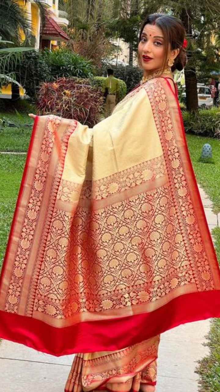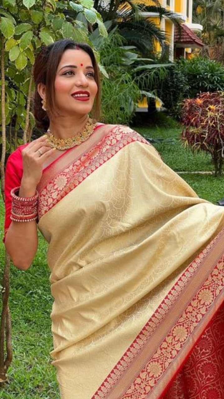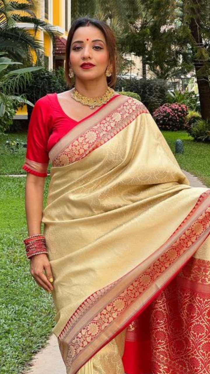 मोनालिसा ने खूबसूरत बनारसी साड़ी में फोटो शेयर की हैं, साथ ही कृष्ण जन्माष्टमी की शुभकामनाएं दी हैं।