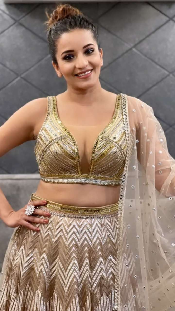 अगर आप अपने लुक को हॉटनेस का तड़का लगाना चाहती हैं तो एक्ट्रेस के इस डीप नेक लहंगे से इंस्पिरेशन लें।