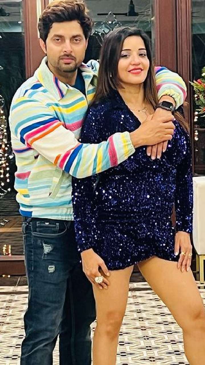 मोनालिसा पति विक्रांत पति संग शॉर्ट ड्रेस पहने बेहद हॉट अंदाज में दिखी।