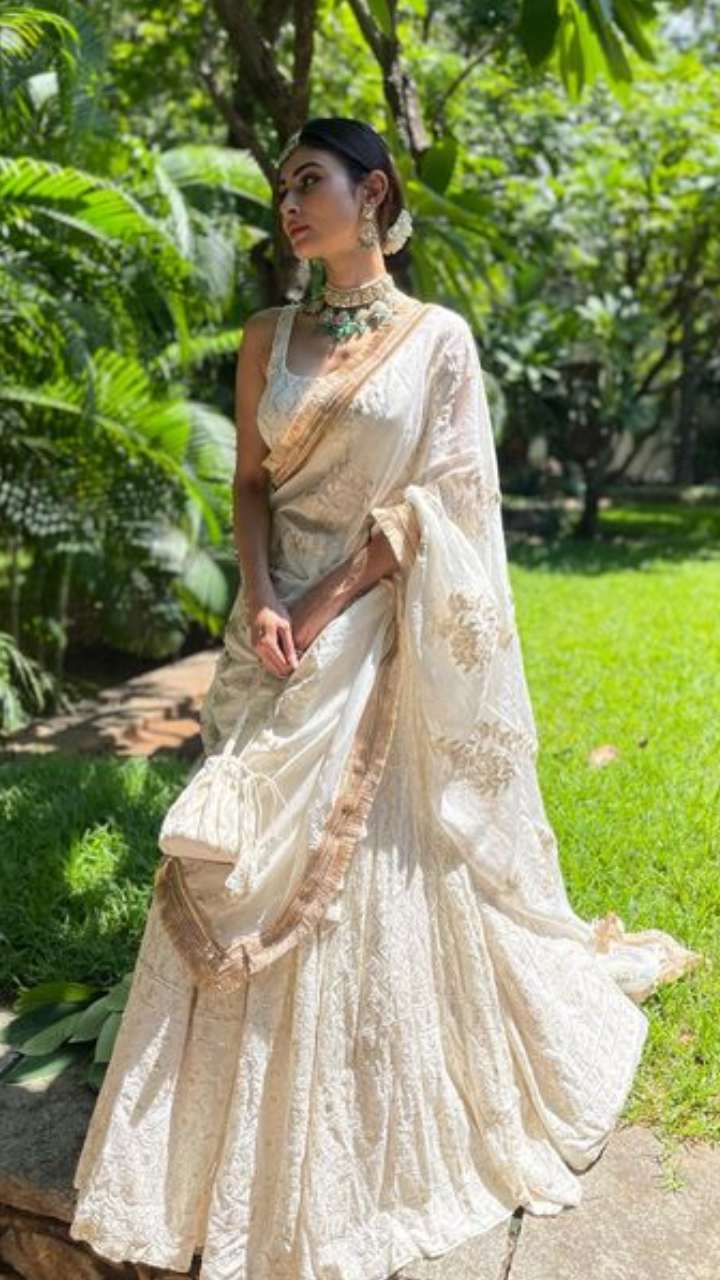 मौनी रॉय सिंपल लुक में भी बेहद कमाल की दिखती हैं। इस ऑफ व्हाइट रंग के सिंपल लहंगे में भी एक्ट्रेस की खूबसूरती देखी जा सकती है।