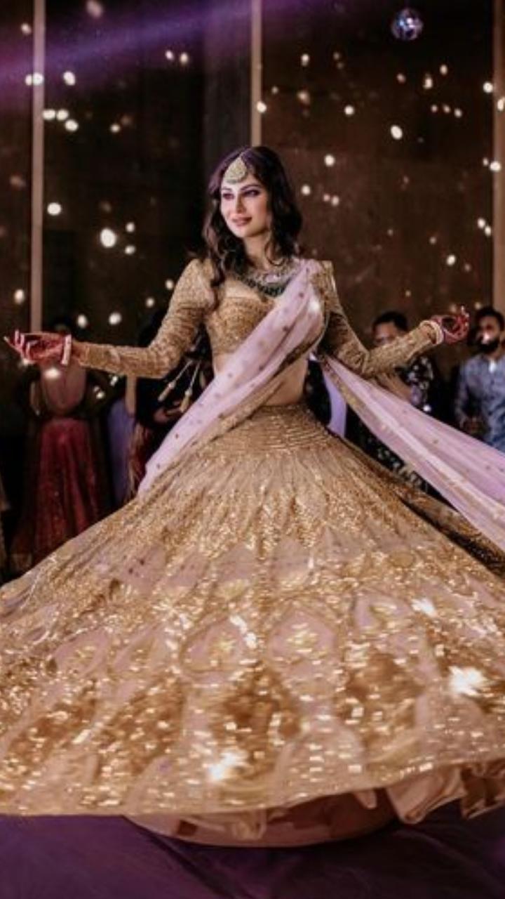 इस गोल्डन शिमर लहंगे में एक्ट्रेस किसी अप्सरा से कम नहीं लग आ रही हैं।