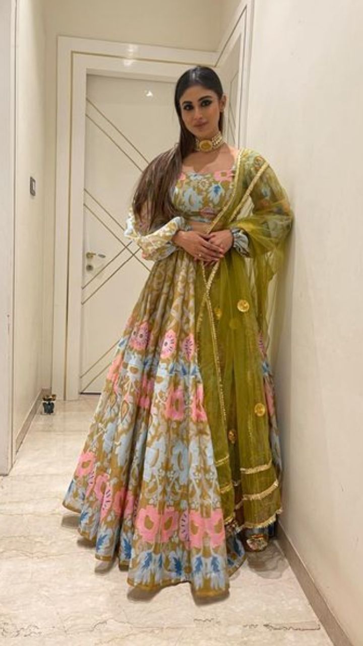 एक्ट्रेस पर ये फ्लोरल प्रिंट वाला लहंगा उनकी खूबसूरती को और अधिक निखार रहा है।