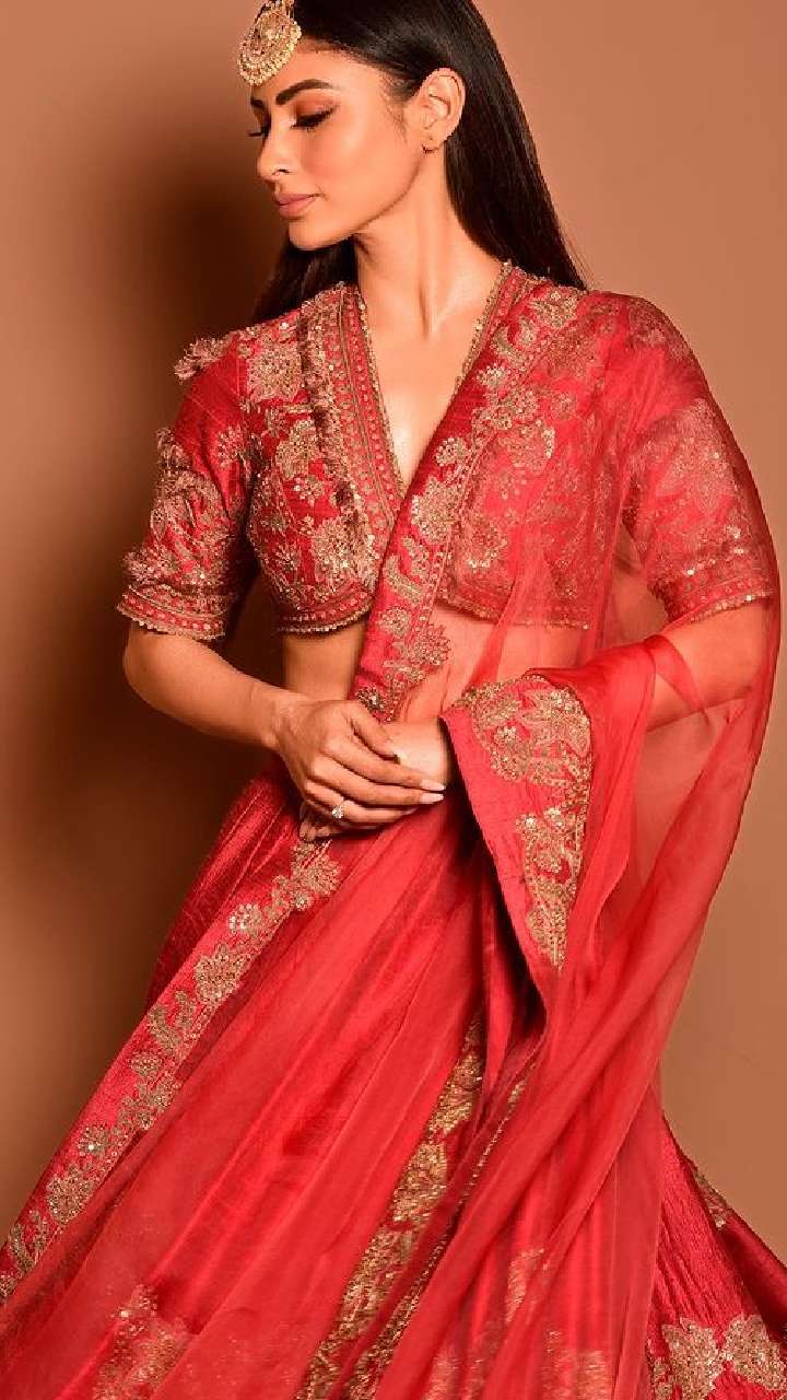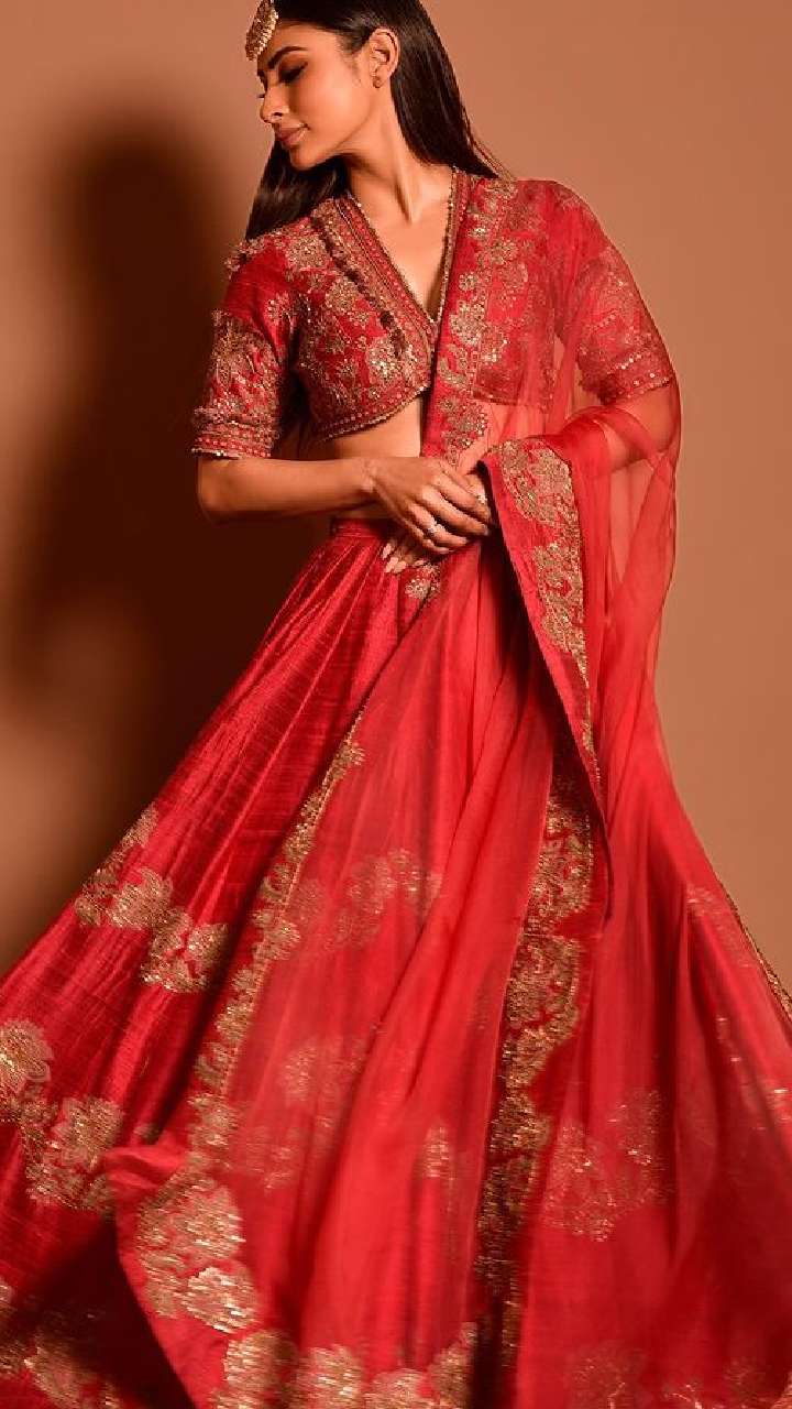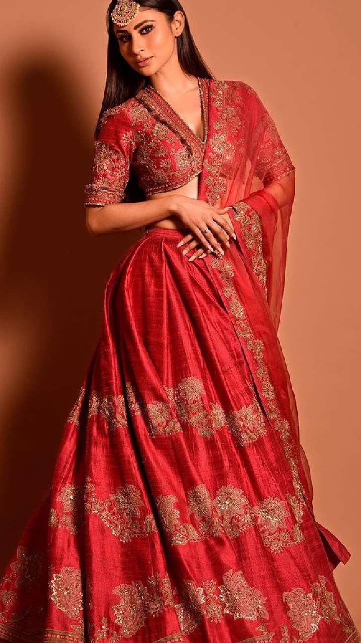 मौनी रॉय की रेड लहंगे में लेटेस्ट फोटोज सामने आईं हैं, जिसमें वो हुस्न की मलिका लग रहीं हैं।