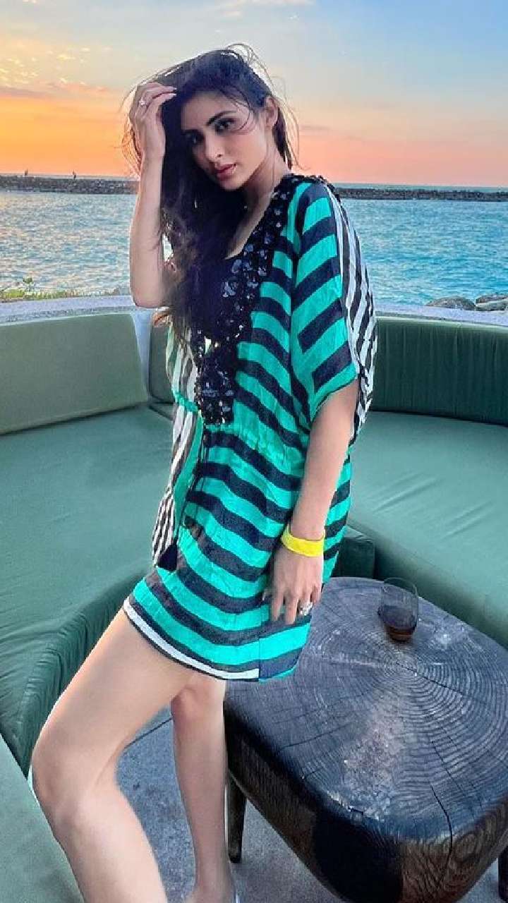 नागिन फेम अपनी इन तस्वीरों में ग्रीन ब्लैक कलर की ड्रेस में बेहद स्टनिंग अदाएं देती देखी जा सकती हैं।