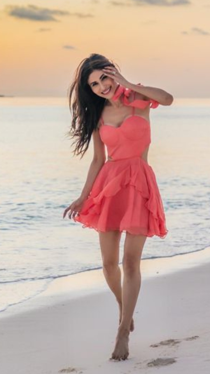 मौनी रॉय इस पिंक कलर की ड्रेस में बेहद क्यूट लग रही हैं।