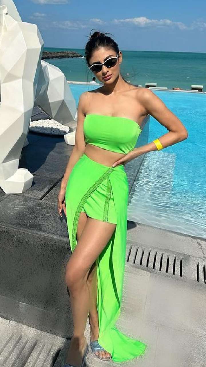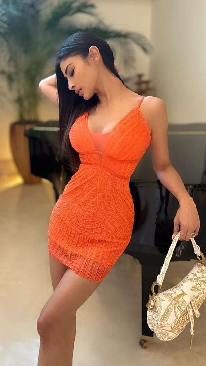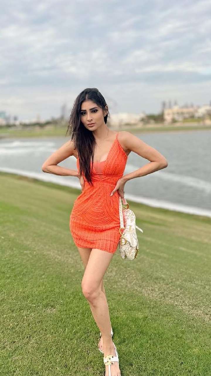 हाल में मौनी ने इंस्टाग्राम पर स ऑरेंज कलर की शार्ट ड्रेस में अपना हॉट लुक शेयर किया है।