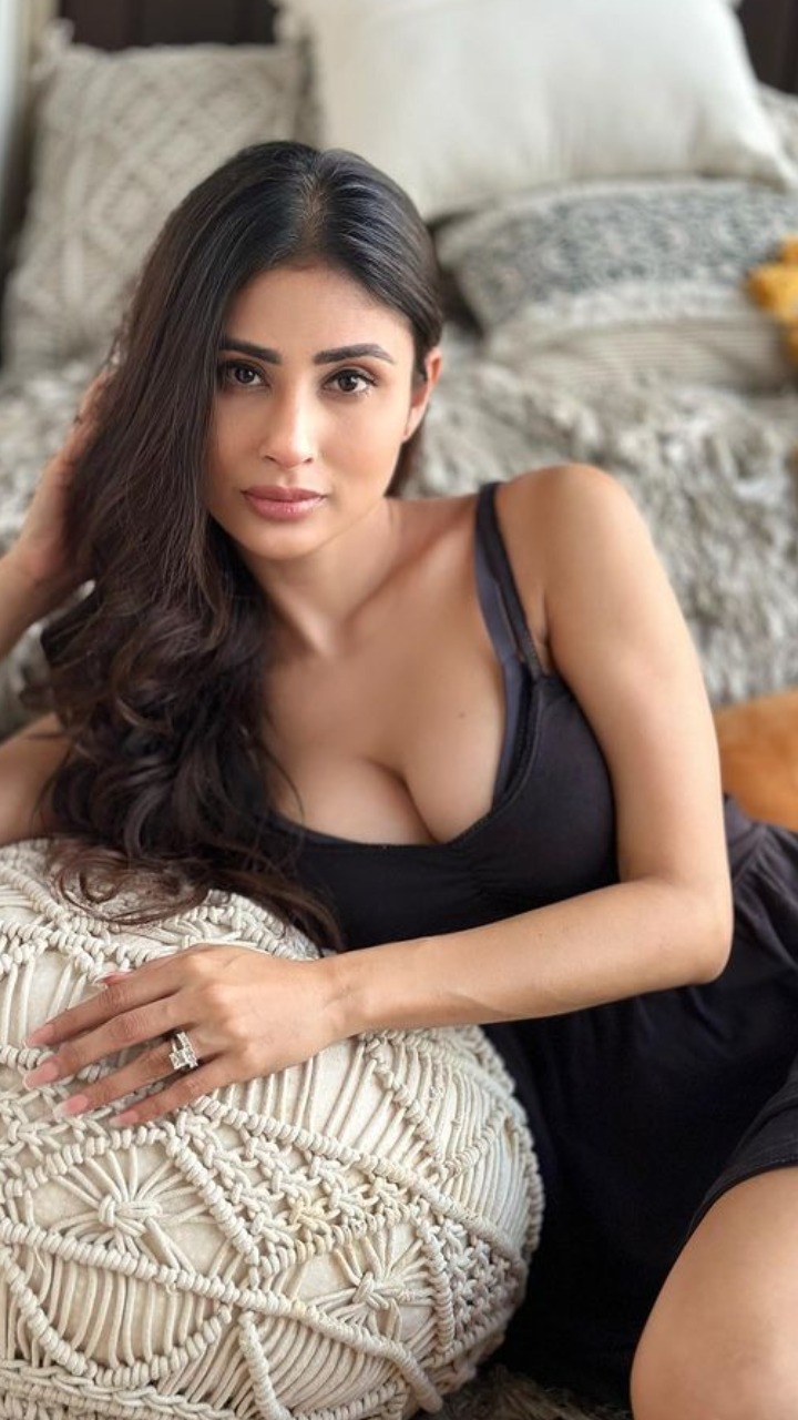 मौनी इस ब्लैक डीपनैक ड्रेस में बेहद चार्मिंग दिख रही हैं।