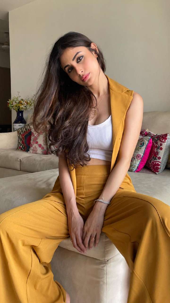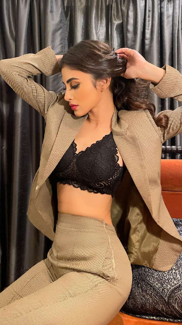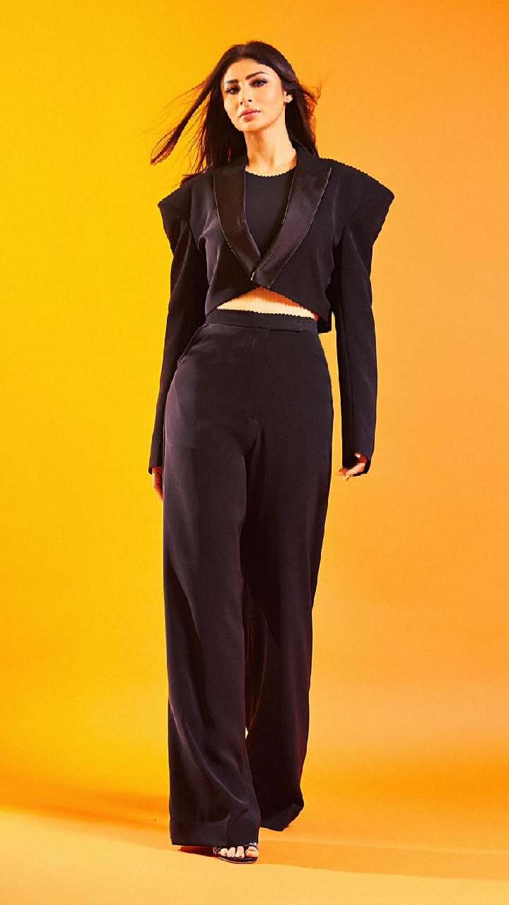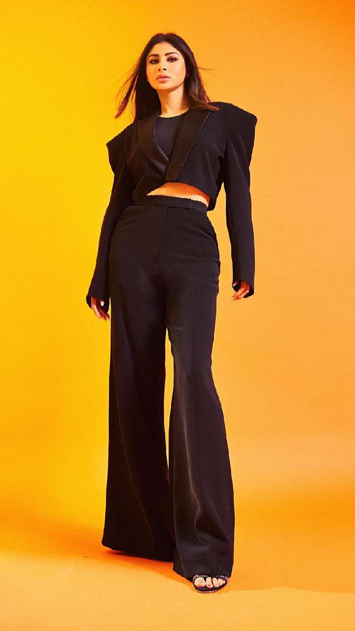 एक्ट्रेस ने हाल में अपना ब्लैक ऑउटफिट में लेटेस्ट बॉसी लुक शेयर किया है। ब्लैक बूट कट पेंट, क्रॉप टॉप और शार्ट ब्लेजर में मौनी काफी स्मार्ट लग रही हैं।