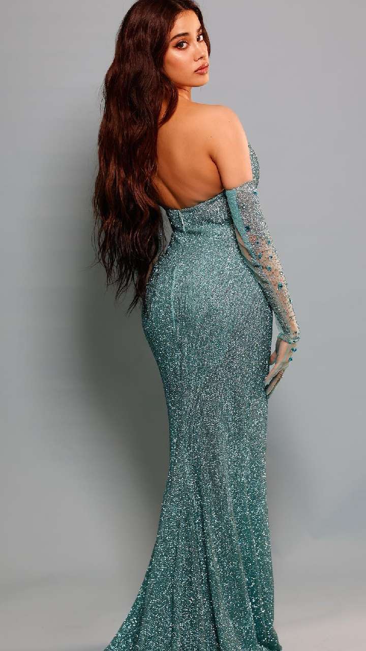 जान्ह्ववी ग्रीन कलर के प्लेन बैकलेस गाउन में कहर ढहा रही हैं। साथ में उनकी स्मोकी आई काफी किलर लुक दे रही हैं।