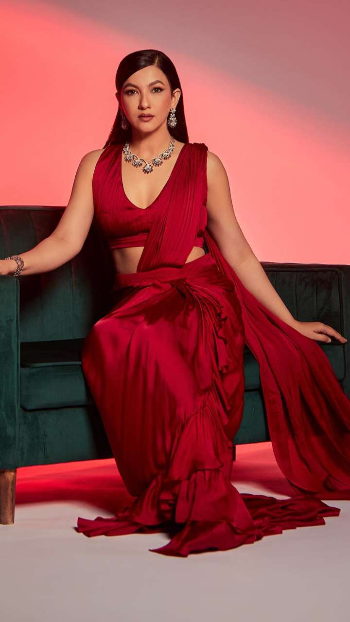 इस ऑम्ब्रे साड़ी हेवी पर्ल चोकर नेकपीस स्मोकी आई में अभिनेत्री एकदम वेडिंग गेस्ट लुक दे रही हैं। आप इस ऑलओवर लुक को कॉपी कर सकती हैं।