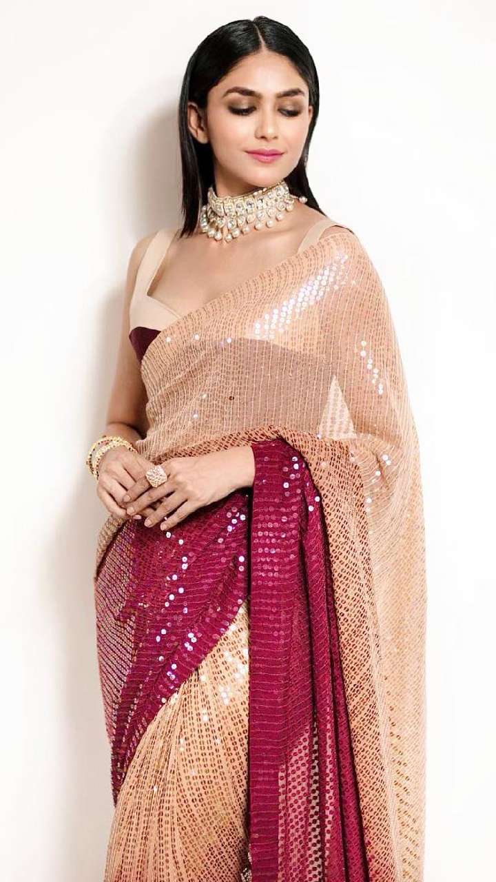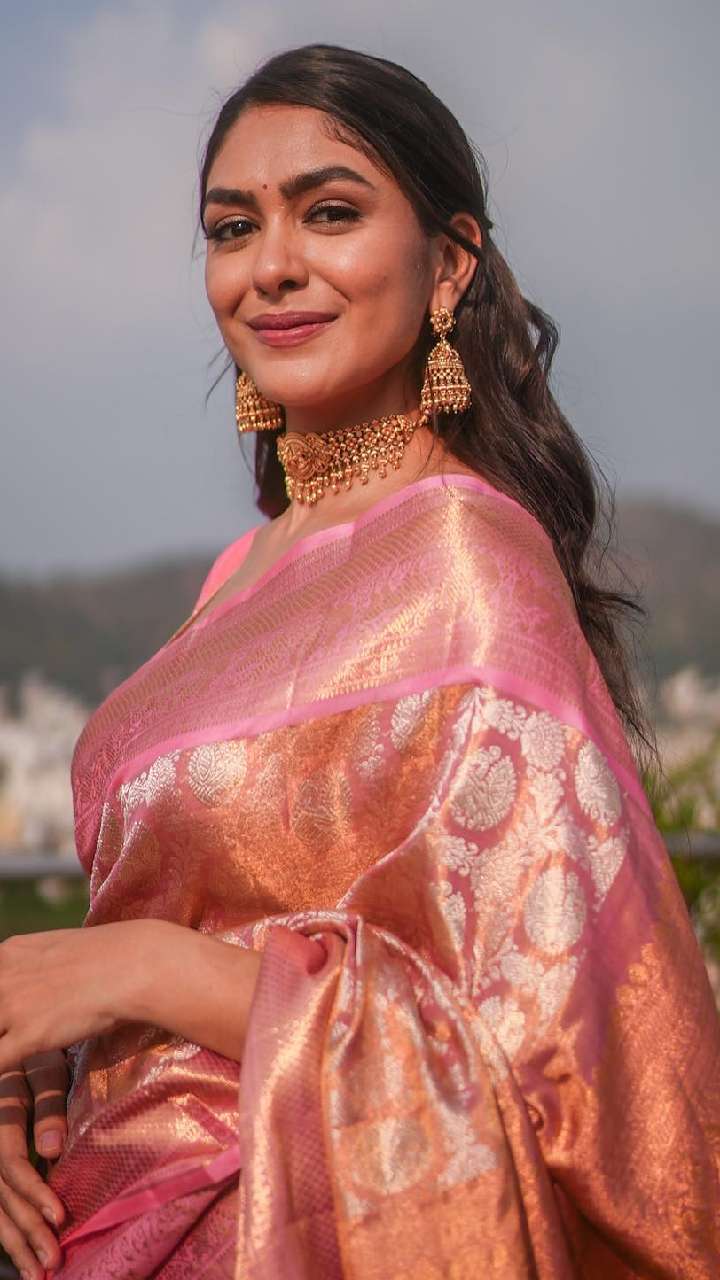 इसके अलावा एक्ट्रेस का ड्रेसिंग सेंस भी काफी स्टाइलिश होता है। मृणाल एथनिक ऑउटफिट में बला की खूबसूरत लगती हैं। आइये आज एक नजर डालते हैं डीवा के ट्रेंडी साड़ी और मेकअप लुक्स पर।