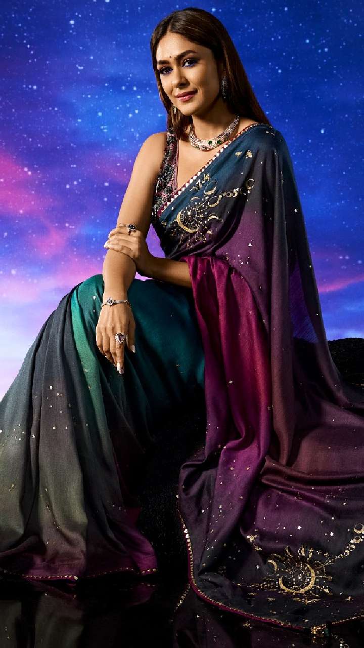 Mrunal की प्रिंटेड स्टाइलिश साड़ी यंग गर्ल्स को क्लासी लुक के साथ अट्रैक्टिव लुक देगी। एक्ट्रेस ने साड़ी को स्टाइलिश लुक देने के लिए ट्यूब ब्लाउज कैरी किया है, जो बेहतरीन लुक दे रहा है।