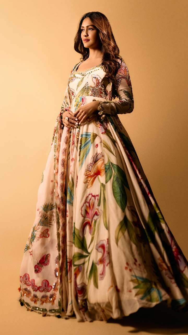 इस रिसेप्शन पार्टी में आप भी एक्ट्रेस की तरह फ्लोरल प्रिंट अनारकली सूट से खुद को गॉर्जियस बना सकती हैं।