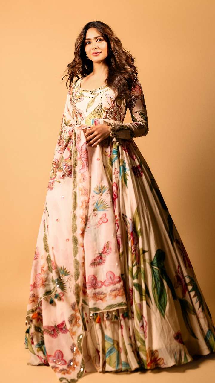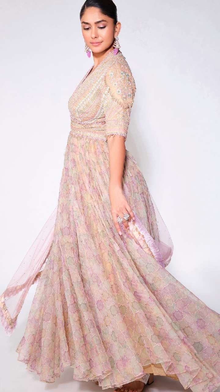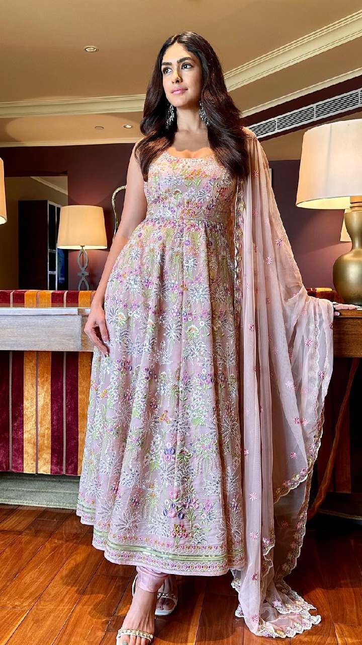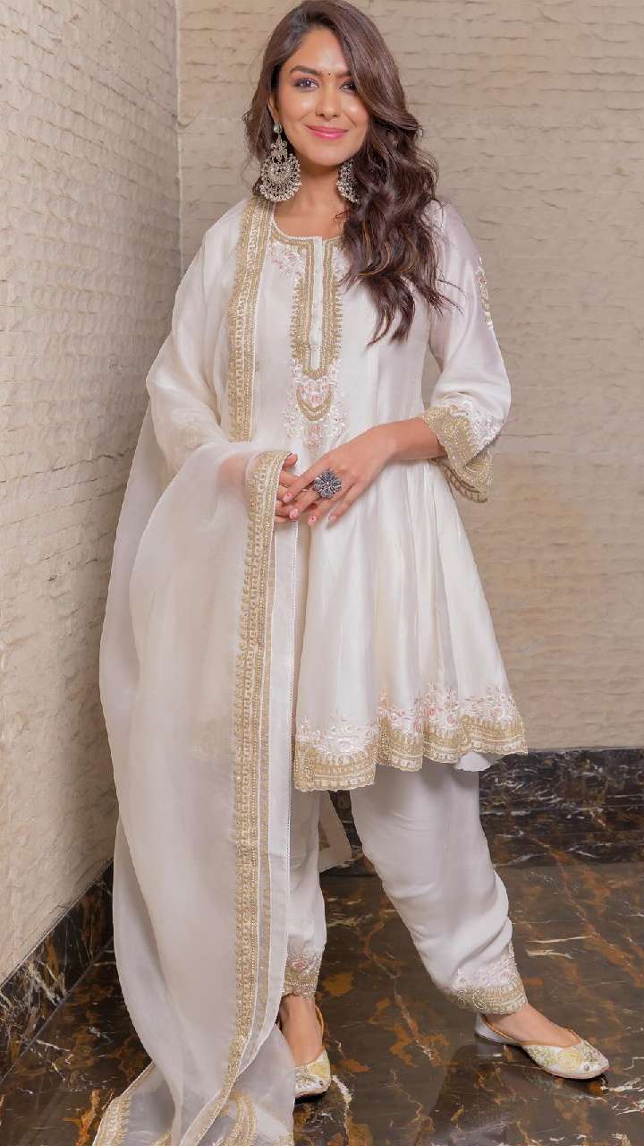 मृणाल इस बनारसी शरारा सूट में काफी ब्यूटीफुल लग रही हैं। जिसे आप ईद पर ट्राई कर सकती हैं।