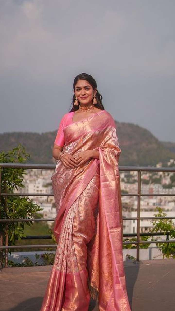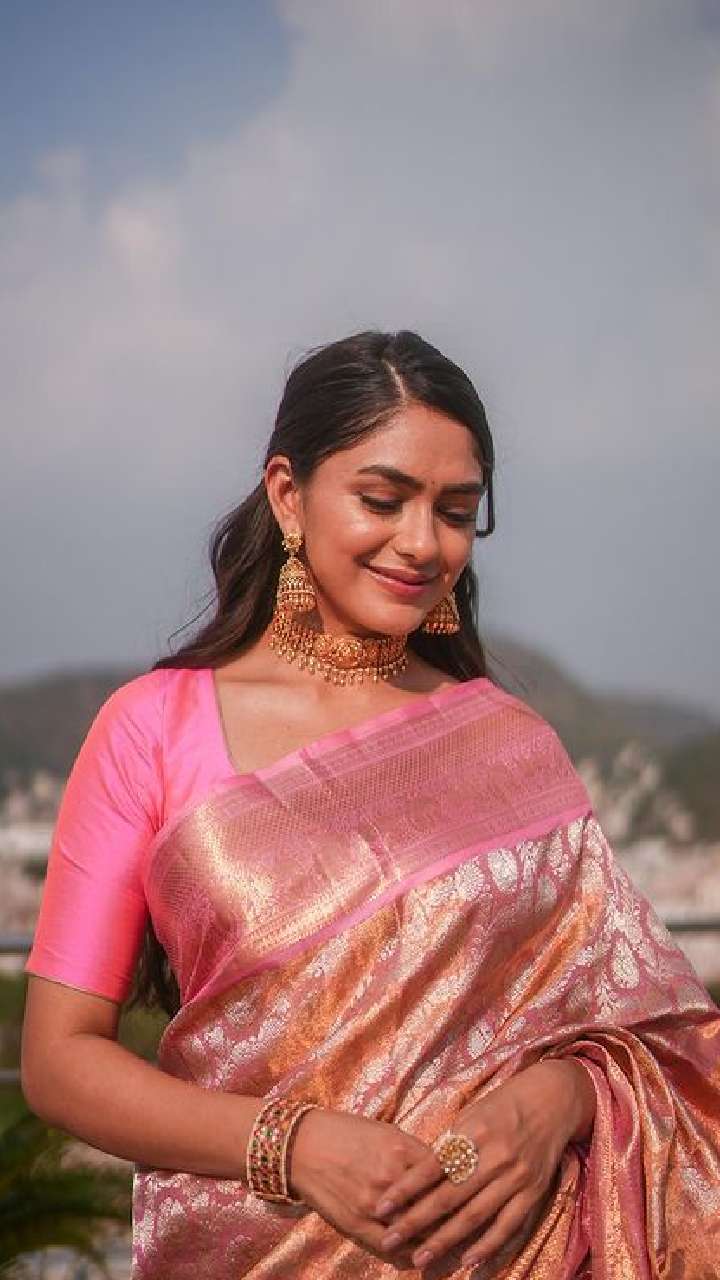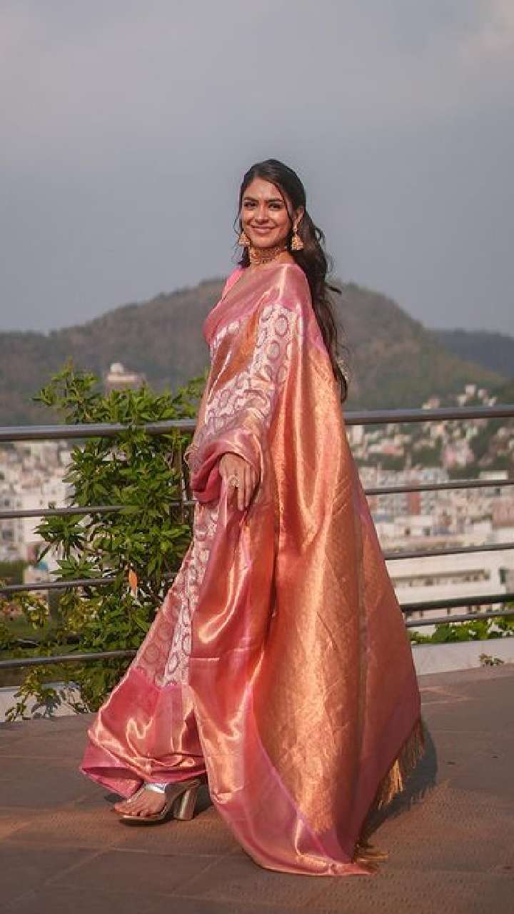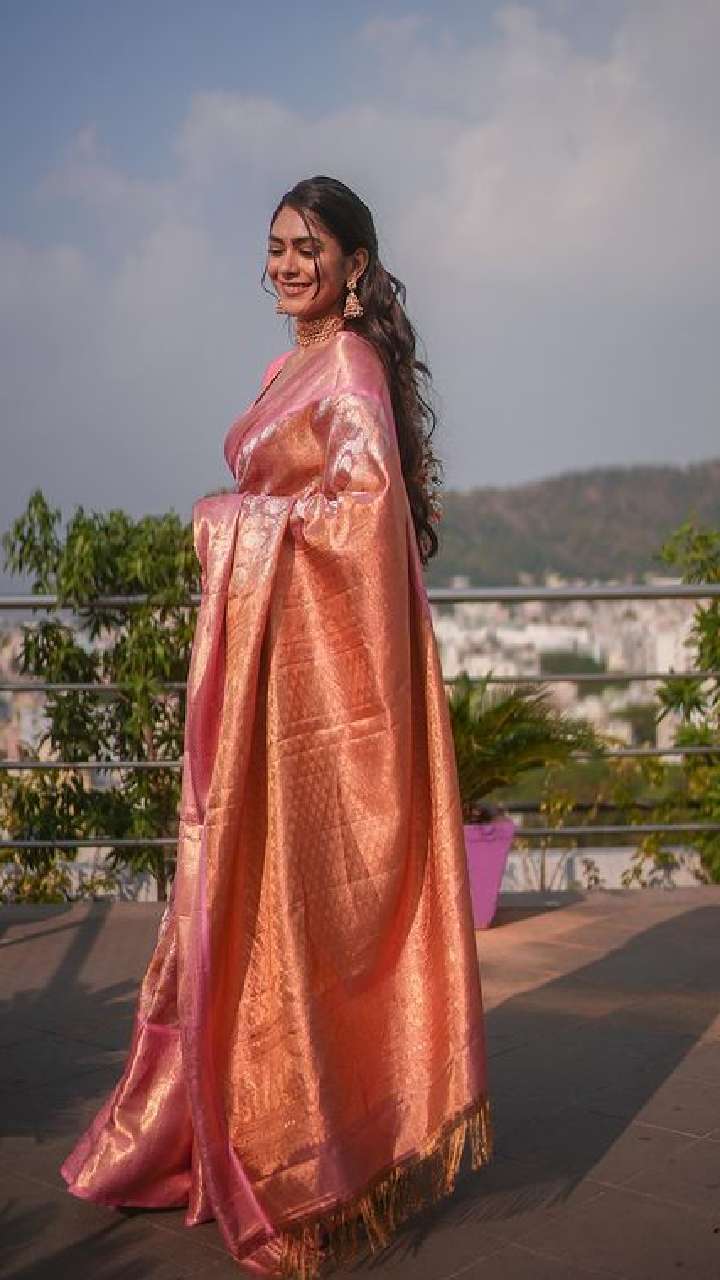 एक्ट्रेस मृणाल ठाकुर सिल्क साड़ी पहने किसी अप्सरा से कम नहीं दिख रही हैं।