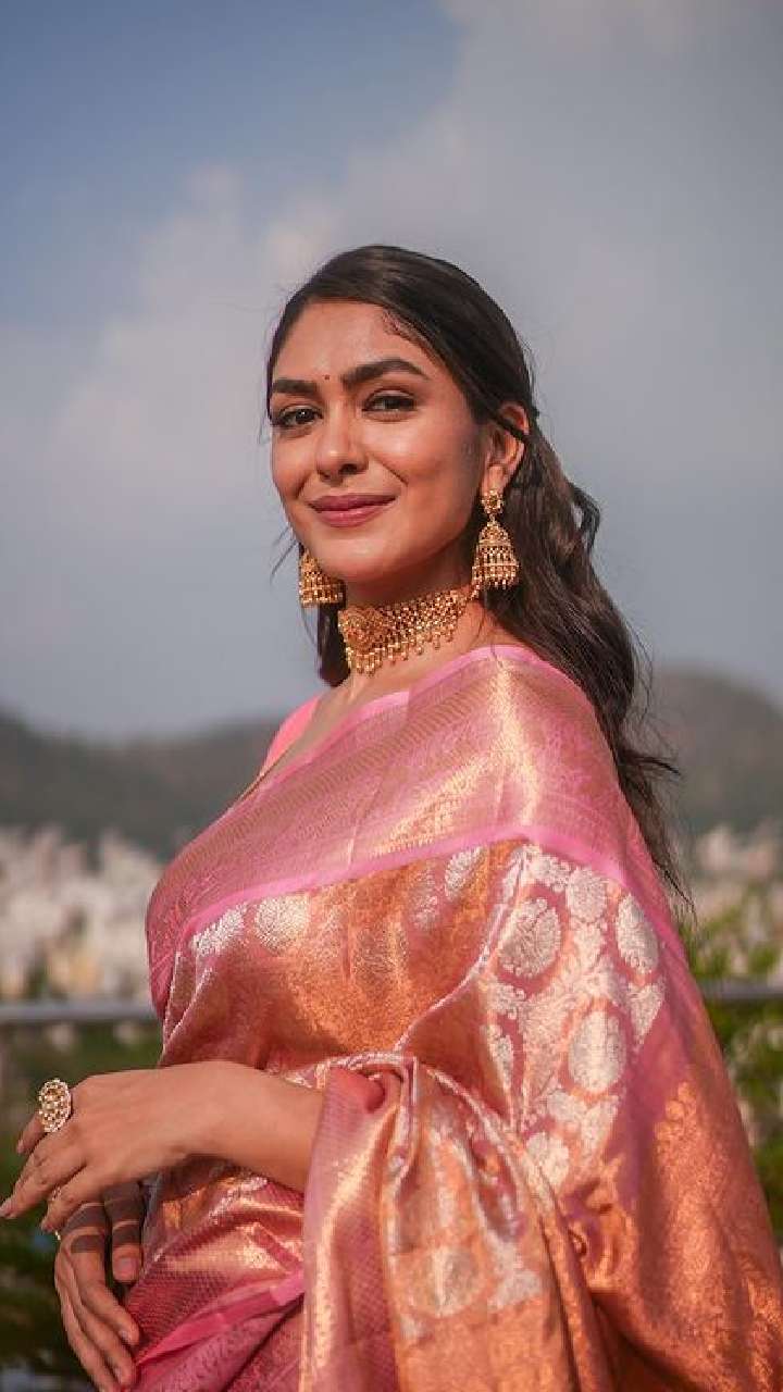 एक्ट्रेस मृणाल ट्रेडिशलन आउटफिट्स कैरी करना काफी पसंद करती हैं। एक्ट्रेस साड़ी में बला की खूबसूरत लगती हैं।
