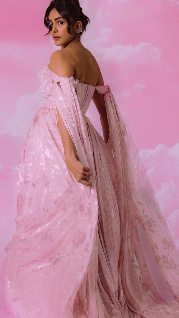 इन फोटोज में मृणाल ने पिंक कलर की खूबसूरत ड्रेस कैरी की हुई हैं। इस ड्रेस में मृणाल सिंडरेला लग रही हैं।