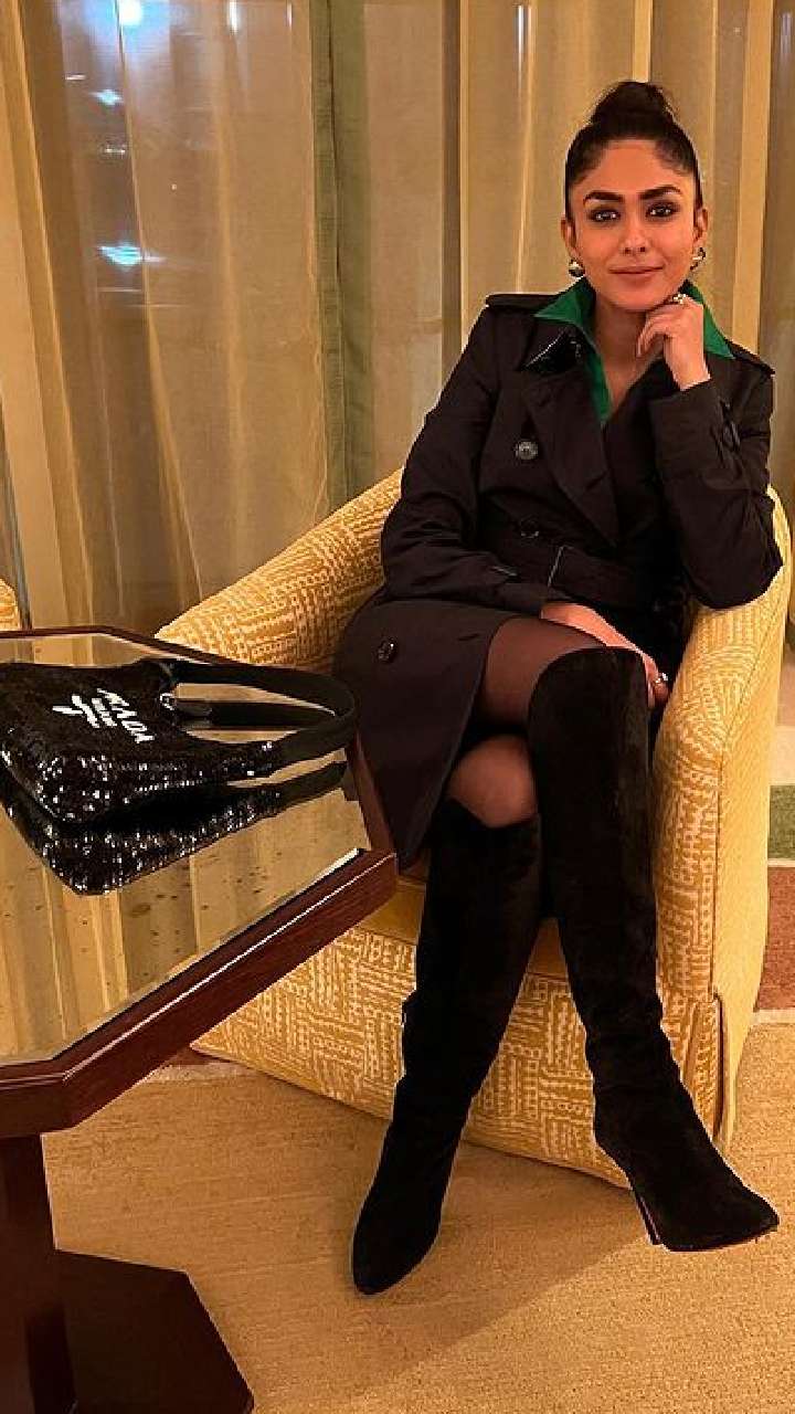 मृणाल ठाकुर ने अपने लेटेस्ट बैग की फोटो शेयर की है। ब्लैक चैनल बैग काफी स्टैण्डर्ड लुक दे रहा है।