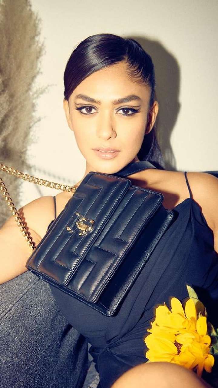प्रोफेशनल लुक में स्टाइल का तड़का लगाने के लिए मृणाल ठाकुर का ये बैग बिलकुल परफेक्ट है।