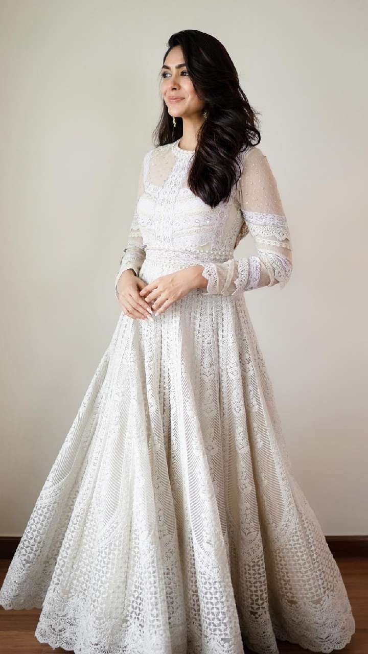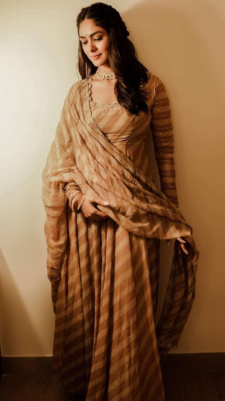 अनारकली सूट भी आप पर बहुत सुंदर लगेगा। मृणाल ठाकुर का ये लुक आप किसी भी खास मौके पर कैरी कर सकती हैं।