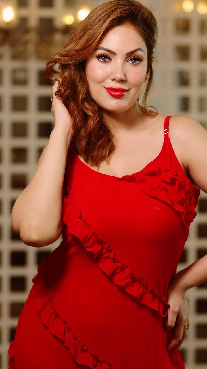 रेड कलर के रफल स्ट्रैपी गाउन में बबिता जी का कातिलाना अंदाज देखा जा सकता है। इस तरह की ड्रेस आपको टॉल और स्लिम लुक देंगी।