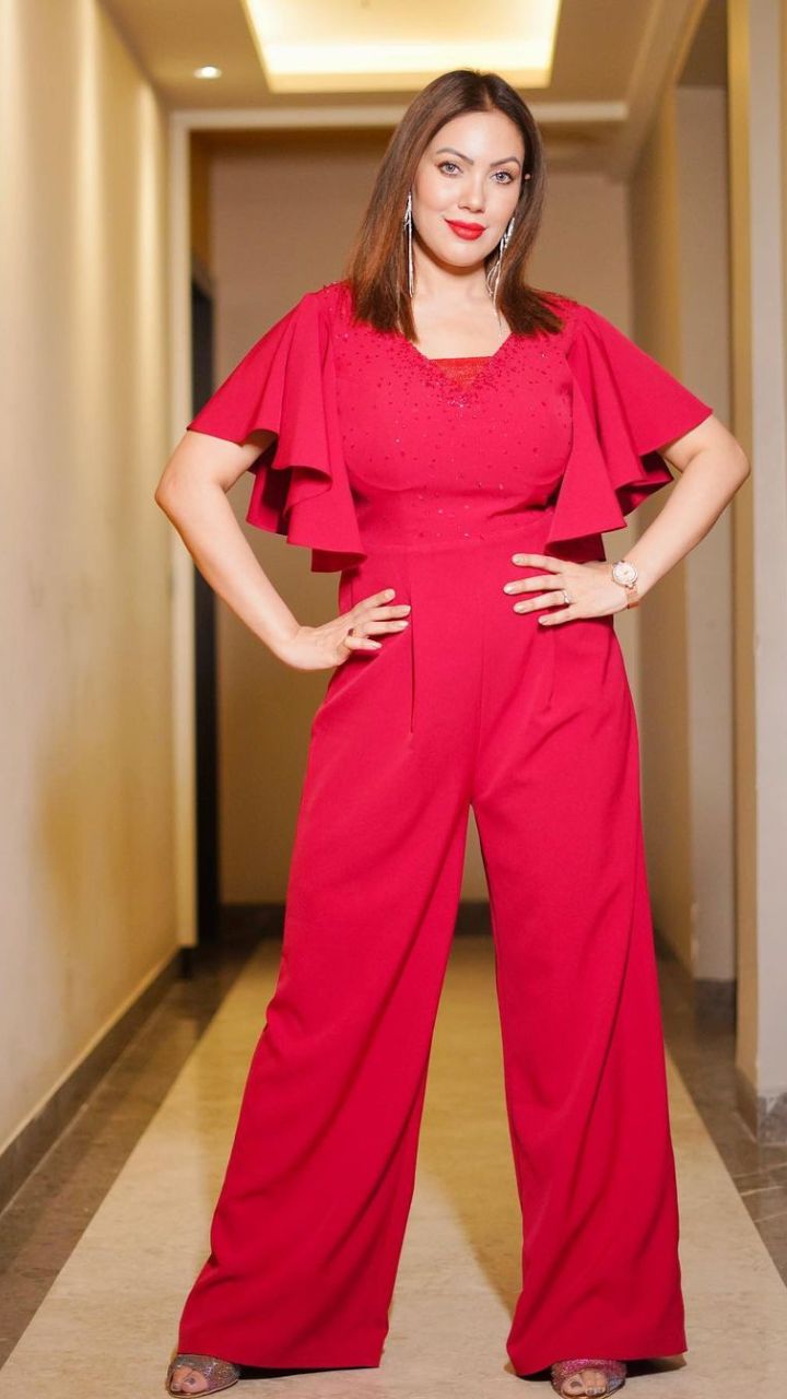 अगर आप जंपसूट के शौकीन हैं तो पार्टी के लिए मुनमुन का यह रेड जंपसूट आपके लिए परफेक्ट रहेगा।